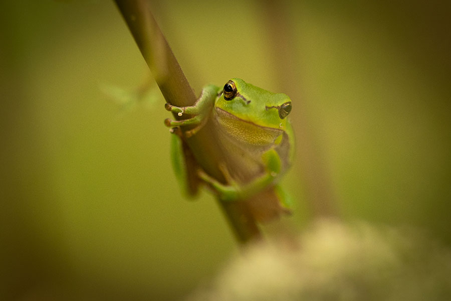De Groene boomkikker, een kleine en opvallende kikker, is een kenmerkende bewoner van moerassen, bossen en tuinen in Nederland. Met zijn heldergroene kleur en grote, ronde ogen valt hij direct op tussen het groen.