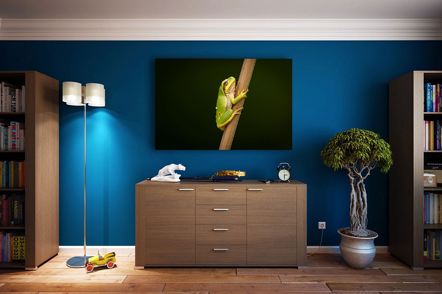 Haal de Groene boomkikker in huis met onze unieke fotoprint – voeg een vleugje groen toe aan je interieur en geniet van de schoonheid van deze prachtige amfibie!