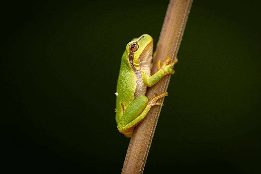 De Groene boomkikker, een kleine en opvallende kikker, is een kenmerkende bewoner van moerassen, bossen en tuinen in Nederland. Met zijn heldergroene kleur en grote, ronde ogen valt hij direct op tussen het groen.